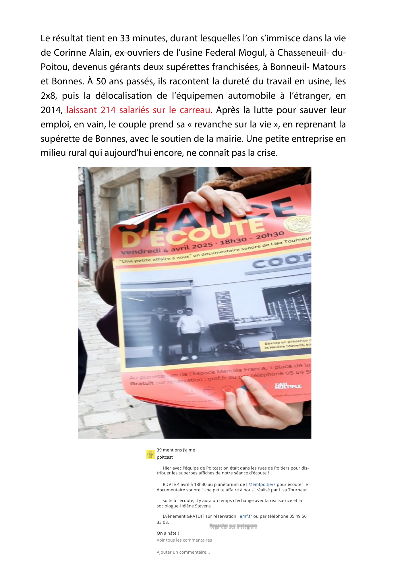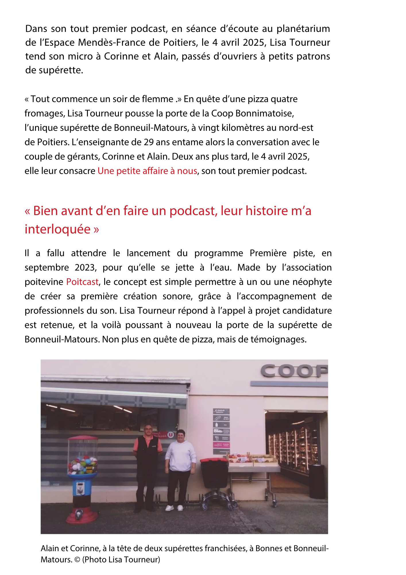 C’est l’histoire de « la supérette d’à côté » d’un bourg rural, celle qui dépanne, qui tire d’affaire, « à toute heure, sept jours sur sept ». Mais c’est aussi l’histoire de Corinne et Alain qui, …